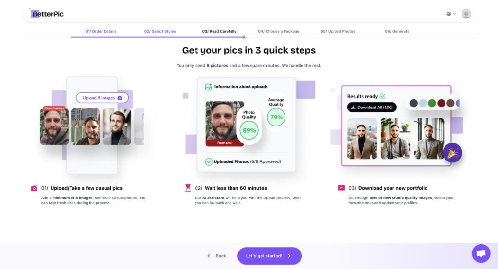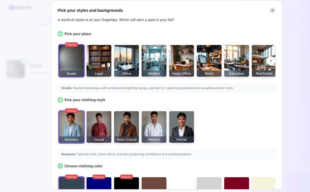All you do is upload 10-15 clear selfies, choose your style, and let the AI take over. Within 1-2 hours, you receive a batch of 4K, customizable headshots. You can also refine your look using the built-in AI Studio or opt for a human editor if needed.